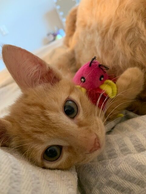 There’s a baby in the house. A tiny, orange, fuzzy baby with two green eyes, 18 pink toes, and 24 whiskers that are too long for his body. His name is Beanie.